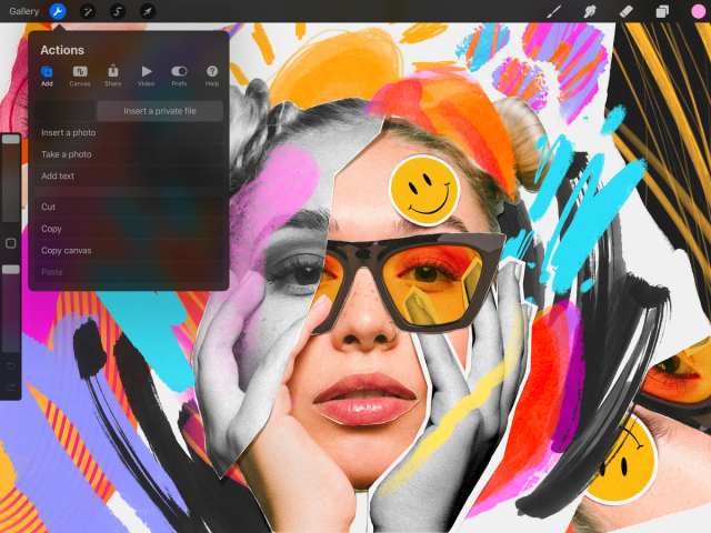 To bring a JPEG, PNG or PSD image from your Photos app into your Canvas. Tap Actions > Add and then slide the Insert a Photo tab to the left until it reveals a grey Insert a private photo button. Tap to open your Photos app and select a photo you’ve taken or images you’ve saved to your iPad.