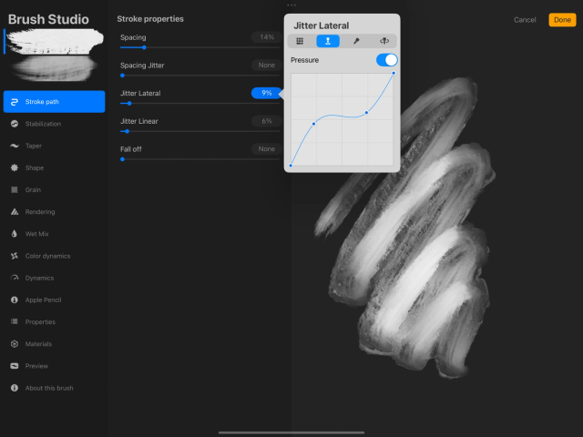 Delve into the Apple Pencil settings to adjust the fundamentals of how the Pencil uses pressure and tilt to interact with brushes.