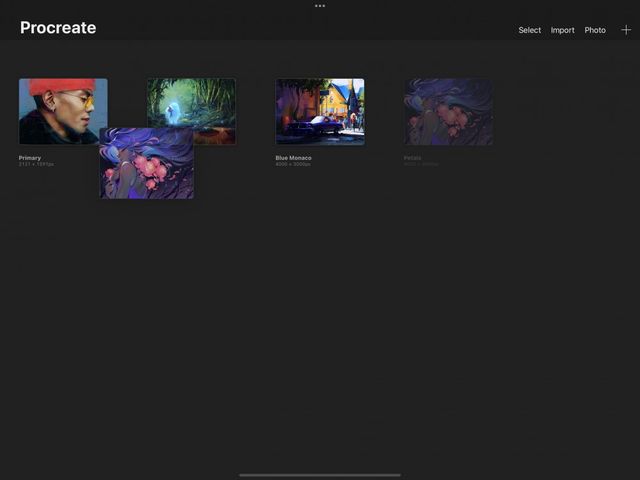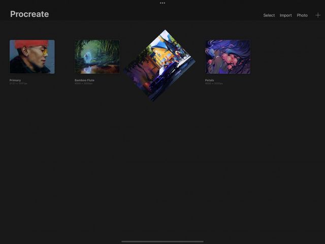 Tap the Select button to enter multiple selection mode. Tap canvases to select them. Selected artworks display a blue tick.