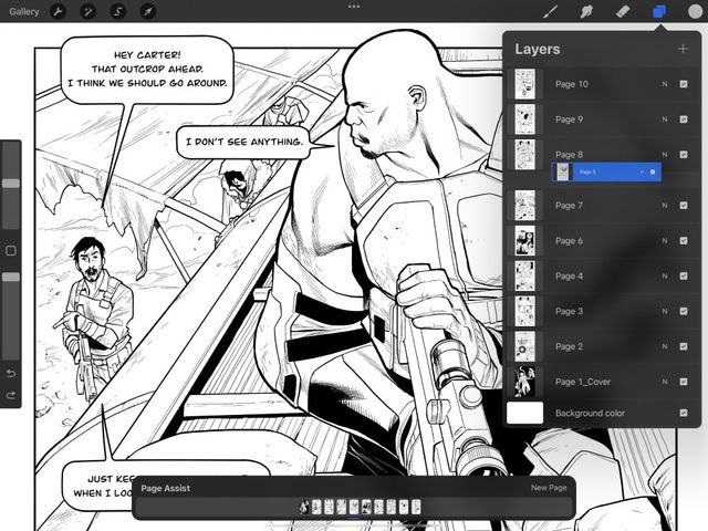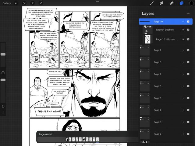 Organizing layers and groups in Page Assist works in the same way as a standard Procreate artwork.